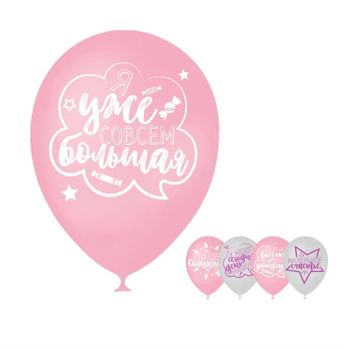 Высококачественный шар из натурального латекса. Ассорти из 10-12 цветов, типа пастель. Шары с двусторонним шелкографическим рисунком. Идеальный ассортимент для розничной продажи воздушных шариков.
