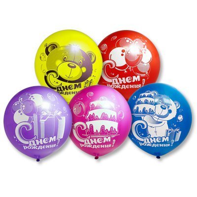 Шар из натурального латекса. Ассорти из 10-12 цветов, одного типа - пастель. Шары с двусторонним шелкографическим рисунком с большим полем печати. Предназначенный для использования в розничной продаже