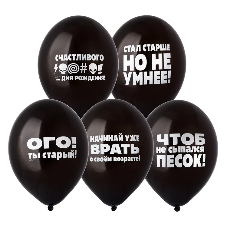 Высококачественный шар из натурального латекса. Ассорти из трех цветов, одного типа - пастель - матовый оттенок цвета. Шары с двусторонним шелкографическими рисунком - надписями: Круглосуточно красивая. Волшебная на всю голову. Злючке и врединке. Ты Ангел на 99%. Ох уж этот 1%... Не женское это дело - молчать. Милашке и красавице. Идеальный ассортимент для розничной продажи воздушных шариков и украшения праздника. Воздушные шары изготавливаются из экологически безопасного 100%-ного натурального латекса. В окружающей среде разлагаются на безопасные компоненты примерно с той-же скоростью, как обычные листья деревьев. После использования лопнуть и утилизировать как бытовой отход.