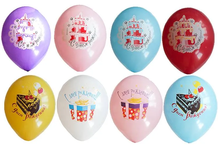 Высококачественный шар из натурального латекса. Ассорти из 10-12 цветов, типа пастель. Шары с двусторонним шелкографическим рисунком. Идеальный ассортимент для розничной продажи воздушных шариков.