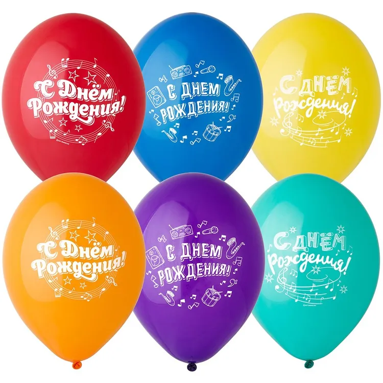 Высококачественный шар из натурального латекса. Ассорти из 10-12 цветов, типа пастель. Шары с двусторонним шелкографическим рисунком. Идеальный ассортимент для розничной продажи воздушных шариков.