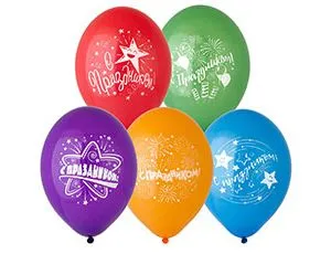 Высококачественный шар из натурального латекса. Ассорти из 10-12 цветов, типа пастель. Шары с двусторонним шелкографическим рисунком. Идеальный ассортимент для розничной продажи воздушных шариков.