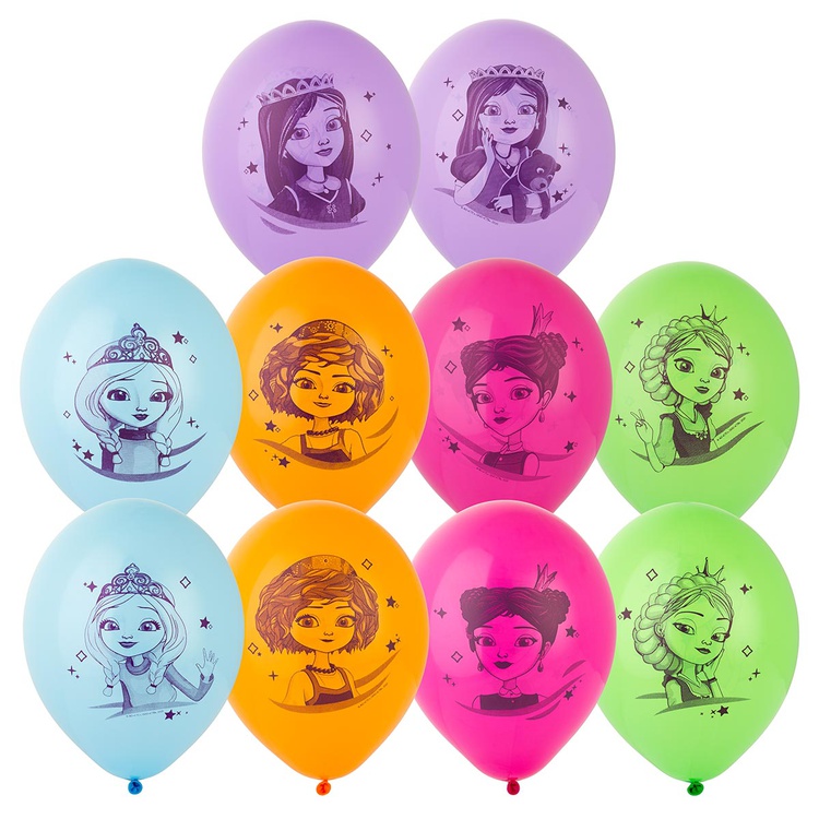 Высококачественный шар из натурального латекса. Ассорти из 5 цветов (в случайном соотношении), одного типа - пастель - матовый оттенок цвета. Шары с двусторонним шелкографическим рисунком (дизайны с любимыми детскими персонажами из мультфильма Царевны. С большим полем печати. Идеальный ассортимент для розничной продажи воздушных шариков и украшения детских праздников.