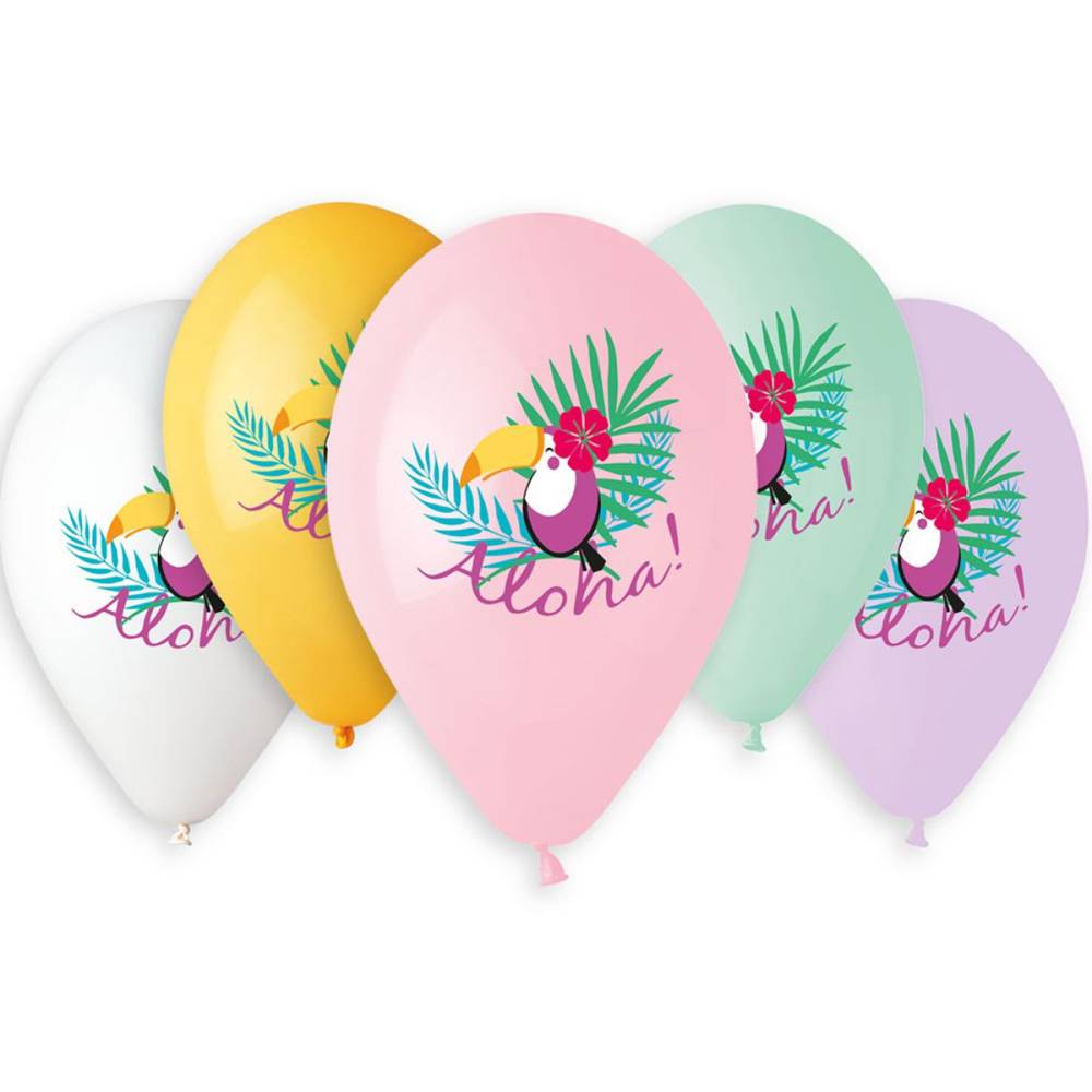 Воздушные шары с крупным стильным многоцветным рисунком Тукана ALOHA. Печать с одной стороны шара. В наборе используются цвета пастельных тонов. Идеальны для украшения и как небольшой подарок ребенку. Размер шаров в надуве - 35 см, продаются ненадутыми, подходят для надува как гелием, так и воздухом при помощи ручного насоса. Производство: Gemar, Италия.