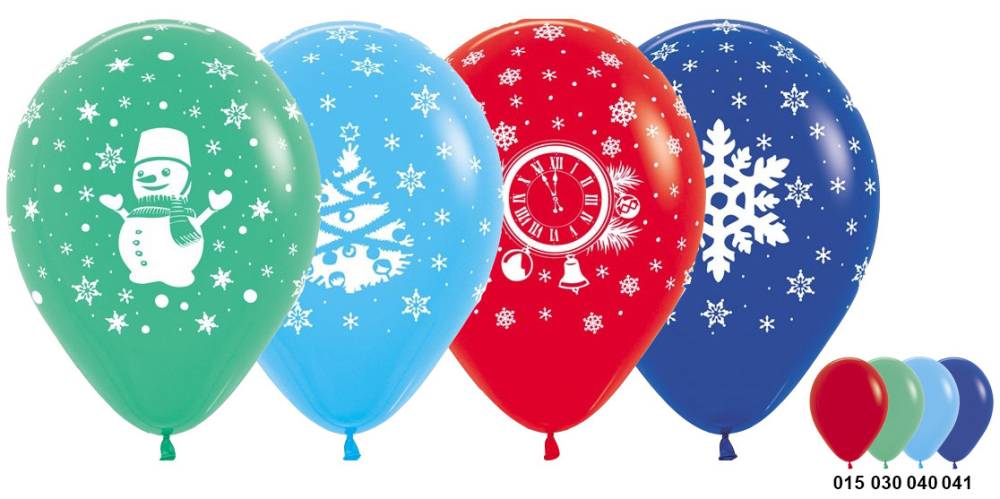 Новый год (снеговик, снежинка, куранты) пастель 12"