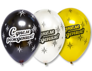 С Днем рождения, металлик 14" (черный, золото, серебро) 1103-1591