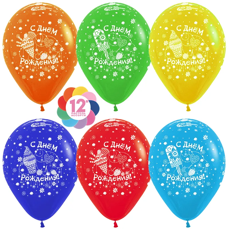 С днем Рождения! Мороженое 12" пастель