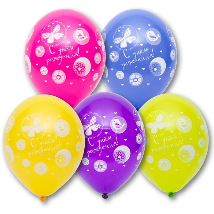 Высококачественный шар из натурального латекса. Одного типа - пастель. Шары с четырехсторонним - круговая печать, шелкографическим рисунком - С Днем Рождения. Цветы, птицы, бабочки. Предназначен для розничной продажи воздушных шариков.