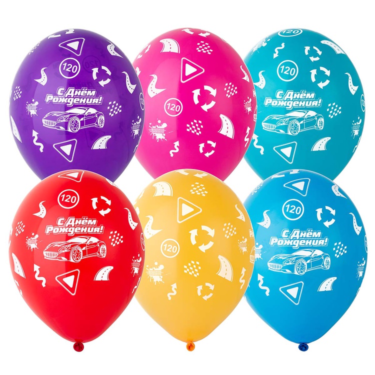 Высококачественный шар из натурального латекса. Одного типа - пастель. Шары с пятисторонним - круговая печать, шелкографическим рисунком Поздравляю Чемпиона. Машины. Техно. Предназначен для розничной продажи воздушных шариков. Ассорти шаров ярких цветов.