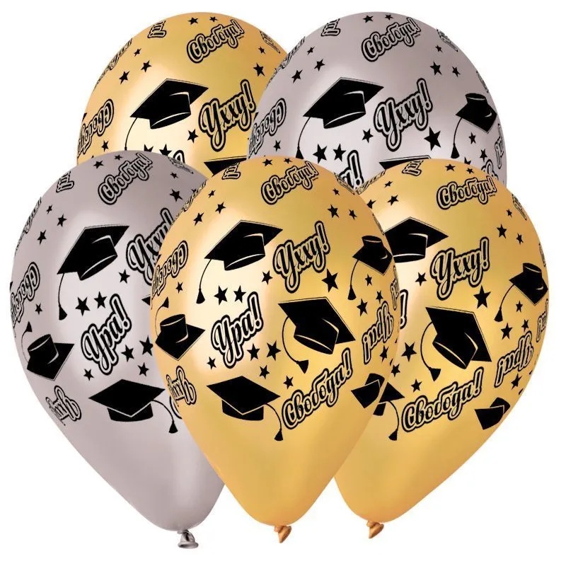 Воздушные шары "Ура! Выпускной, Ассорти Металл, 5 ст." станут отличным дополнением фонтана из шаров на выпускной в школе. Дарите как самостоятельный презент, не требующий повода.