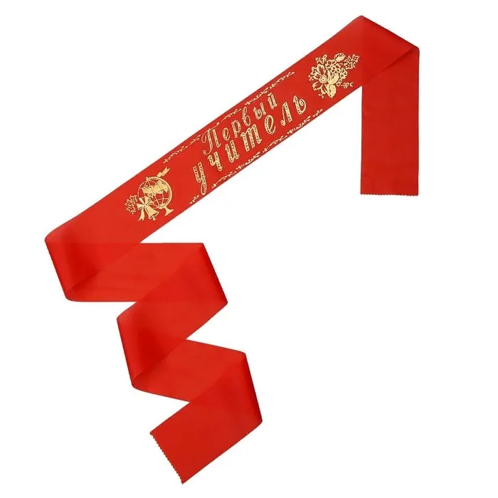 - Лента "Первый учитель" шелк красная/ 1284752