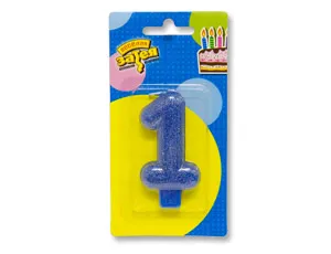 Свеча -цифра "1" Блестящая синяя 7,6см 1502-2144