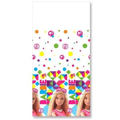 Барби в ретро-стилистике с яркими шевронами и горошками - коллекция для любителей современного конструктивизма и классики рекламы. Скатерть с разбросанными по центру цветными кругами и ромбами и яркой цветной канвой поможет провести вам отличную вечеринку.