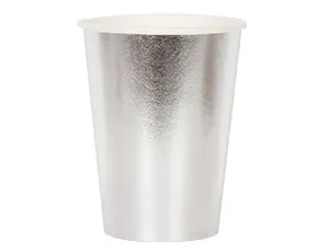 Бумажный стаканчик серебрянного цвета. В наборе 6 стаканов объемом 210мл.
