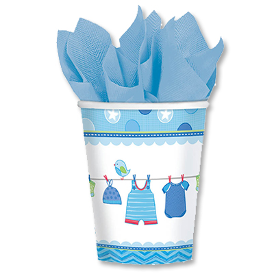 Голубые и синие комбинезоны и боди, шапочки и носочки на бельевой веревке. С коллекцией Любимый Сыночек вы можете отметить как встречу новорожденного, так и годовасие.