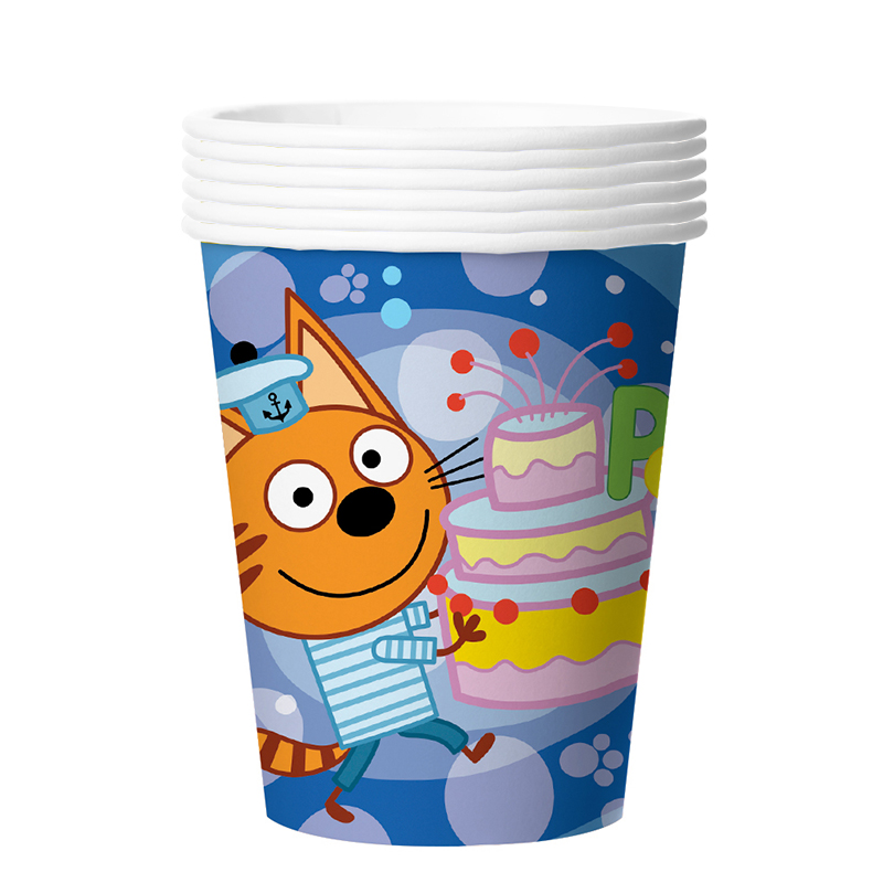 Бумажные стаканчики для прохладительных напитков. В наборе 6 штук, объемом 225мм. Рекомендуем использовать с другими товарами коллекции «Три кота» (салфетки, тарелки, колпачки, языки-гудки, мыльные пузыри, воздушные шары, хлопушки свечи), для оформления вашего торжества в едином стиле!
