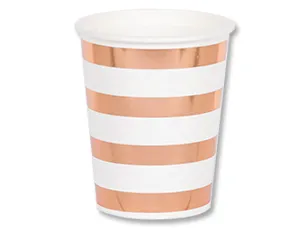 Нарядный бумажный стаканчик объемом 210 мл. Золотые с розовым оттенком стаканчики, скатерти и другие элементы коллекции создают атмосферу праздника. В наборе 6 стаканов. Купить красивую одноразовую посуду оптом можно на нашем сайте.