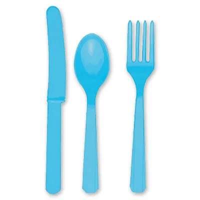 Столовые приборы цвета лазурной карибской воды (нож, вилка, ложка).