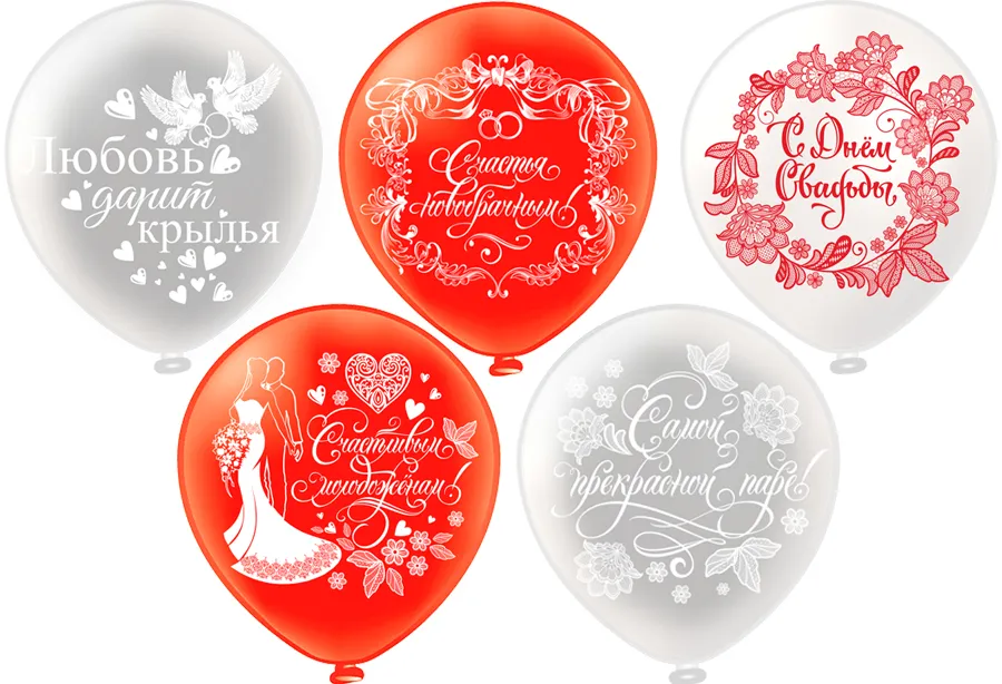 12" Свадьба! красная, 5 дизайнов/ 25 шт (Тайланд) / ч44516