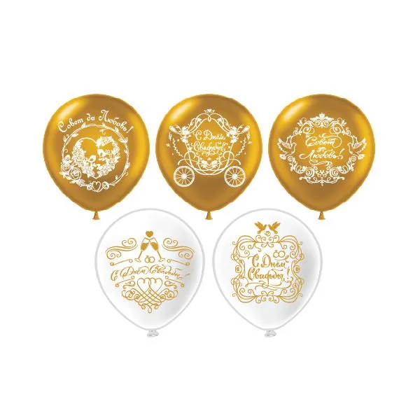 12" Свадьба! золото 5 дизайнов/ 25 шт (Тайланд) / ч31041