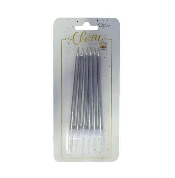 Свечи серебряные с держателями 6шт, 10см 183543