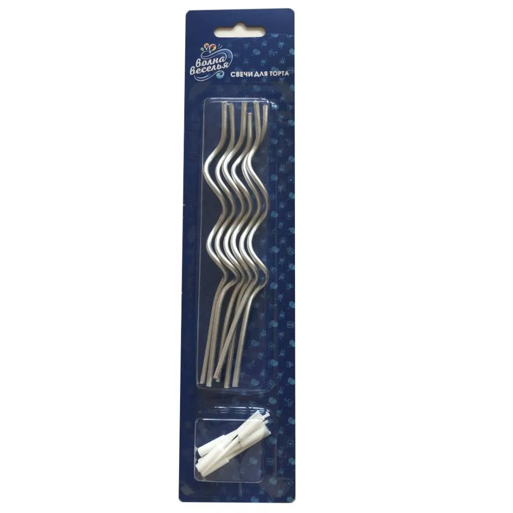 Свечи Тонкие спирали Серебро 14,5см, 6 шт/802705