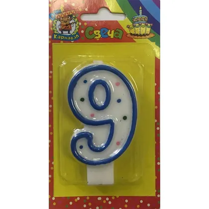 - Свеча для торта с голубой окантовкой "9"