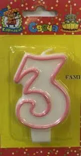 - Свеча для торта с розовой окантовкой "3"