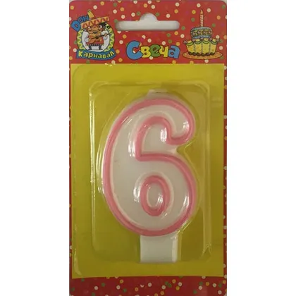 - Свеча для торта с розовой окантовкой "6"
