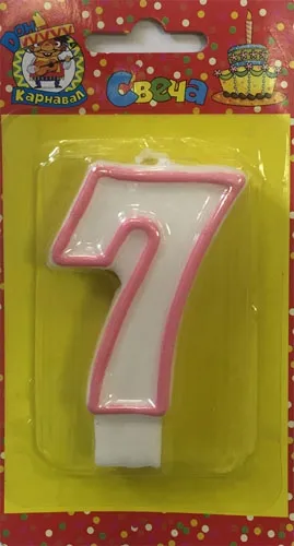 - Свеча для торта с розовой окантовкой "7"
