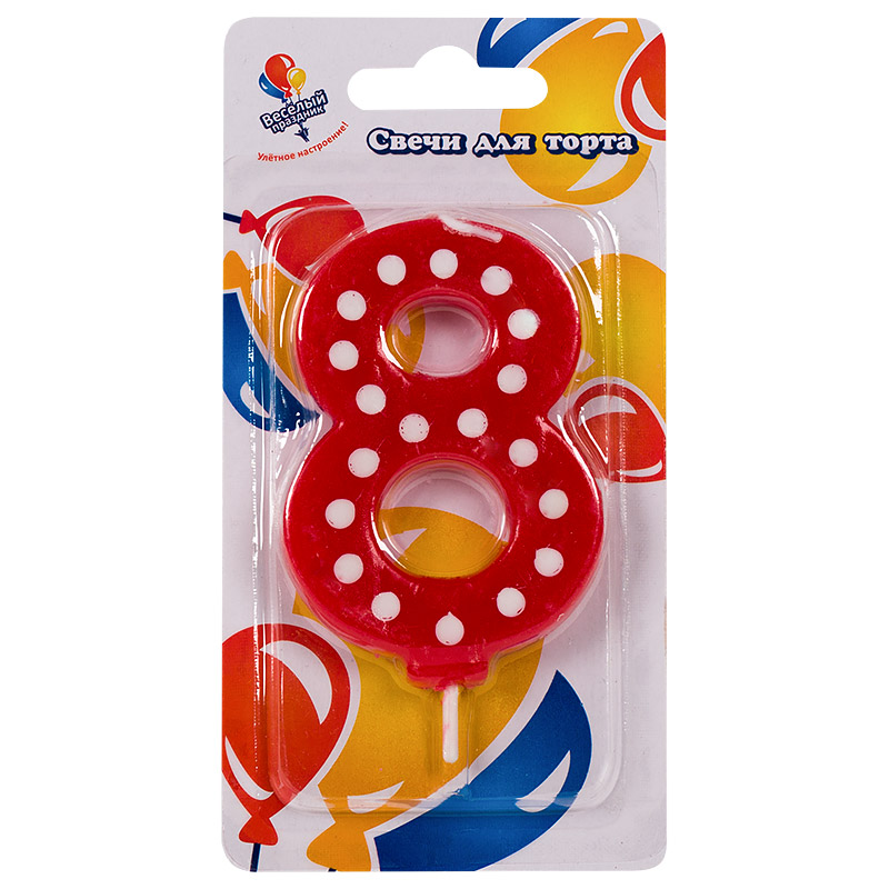 - Свеча для торта в белую точку "8"