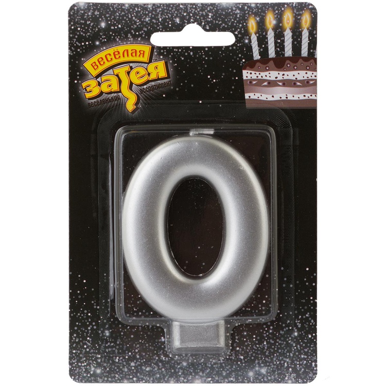 - Свеча-цифра "0" Серебро 8 см / 1502-4590