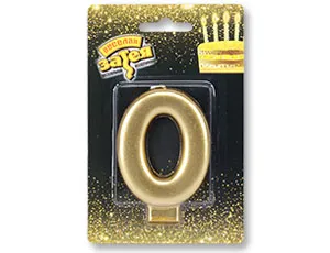 Свеча-цифра "0" Золотая 8см / 1502-2833