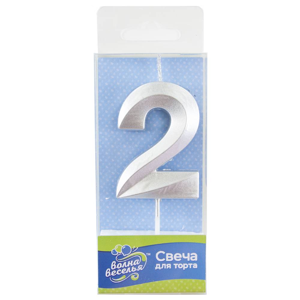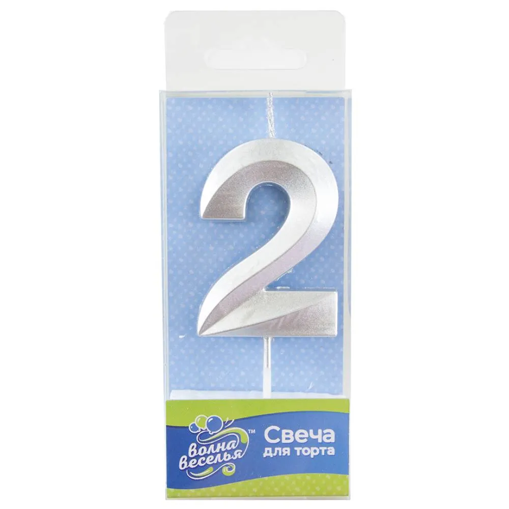 - Свеча-цифра "2" Грани Серебро, 6 см/802752