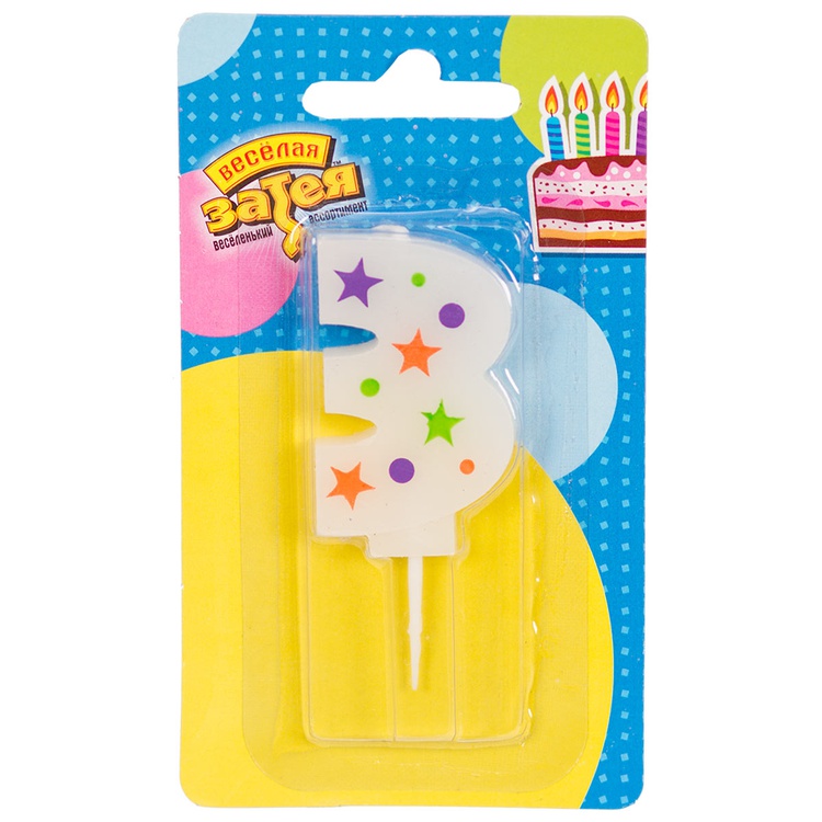 - Свеча -цифра "3" Звезды 5 см 1502-4227