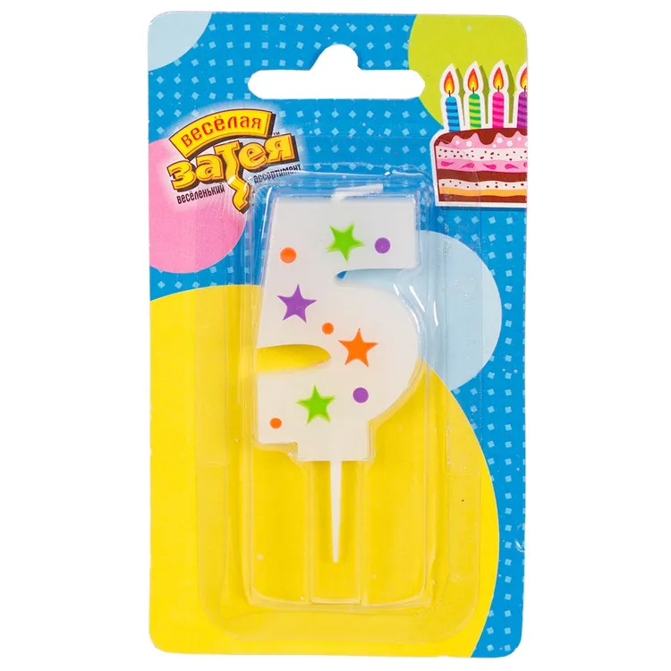 - Свеча -цифра "5" Звезды 5 см 1502-4229