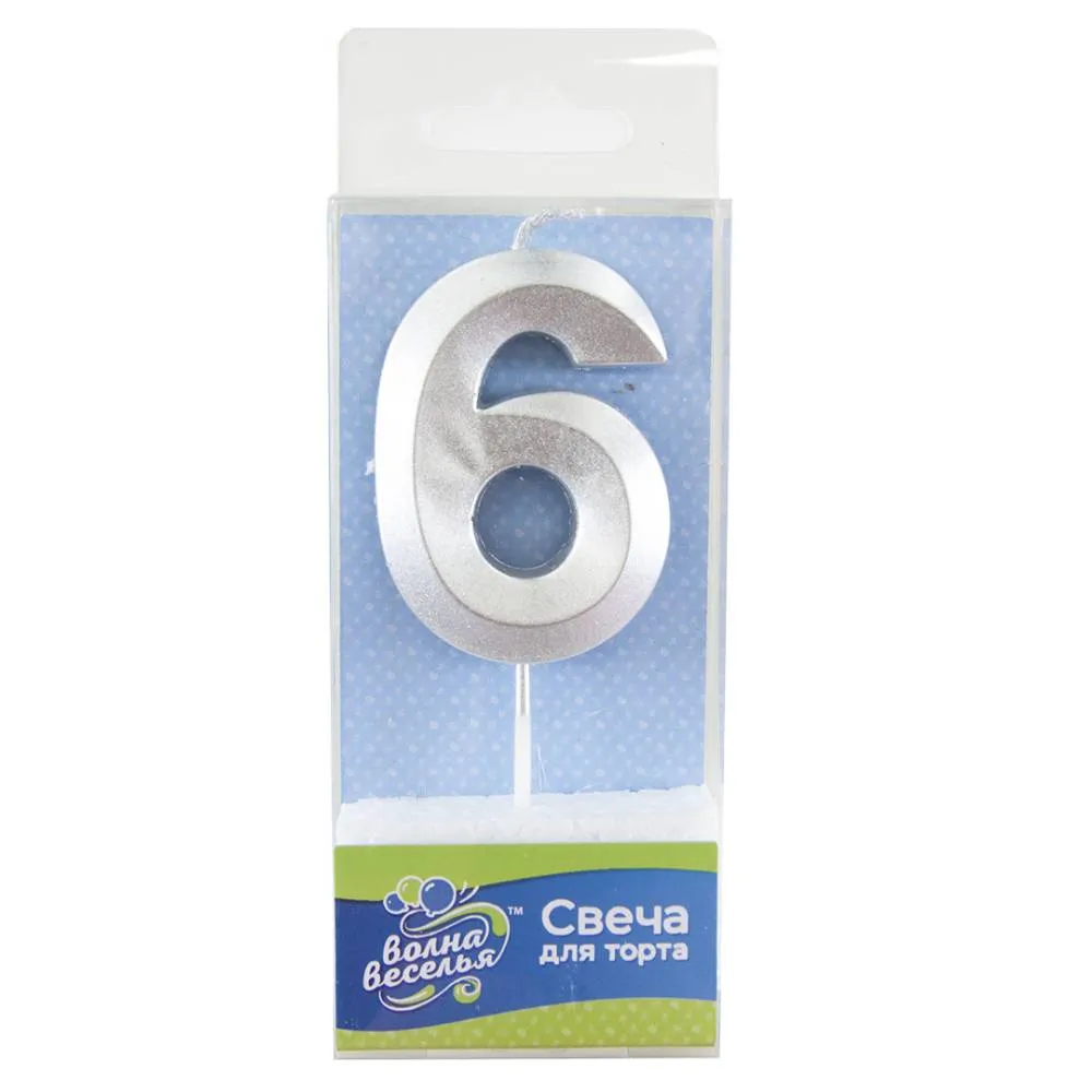 - Свеча-цифра "6" Грани Серебро, 6 см/802756