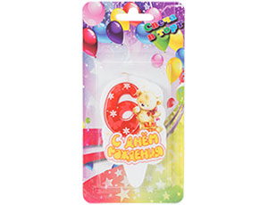 - Свеча-цифра "6" С ДР Мишка 8 см