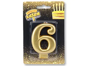 Свеча-цифра "6" Золотая 8см / 1502-2839