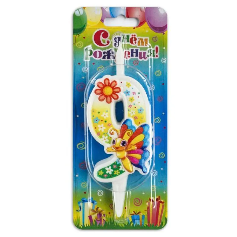 - Свеча-цифра 7,6 см Бабочка "9"