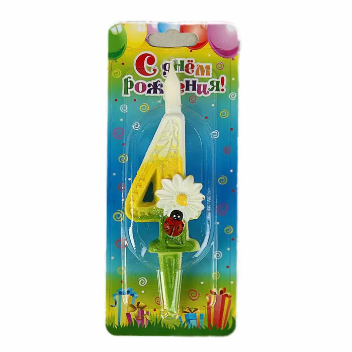 - Свеча-цифра 7,6 см Ромашка "4"
