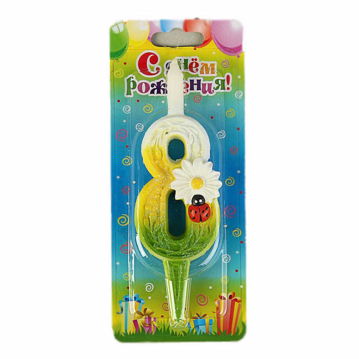 - Свеча-цифра 7,6 см Ромашка "8"