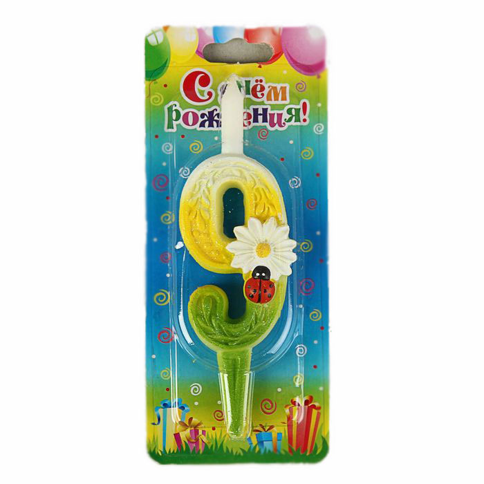 - Свеча-цифра 7,6 см Ромашка "9"