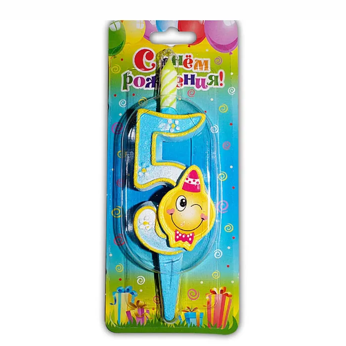 - Свеча-цифра 7,6 см Смайлик "5"