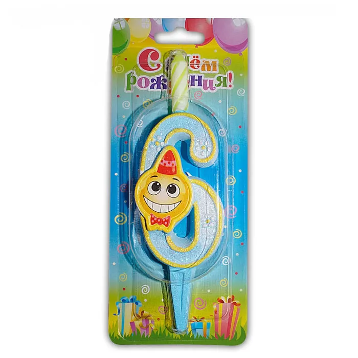 - Свеча-цифра 7,6 см Смайлик "6"
