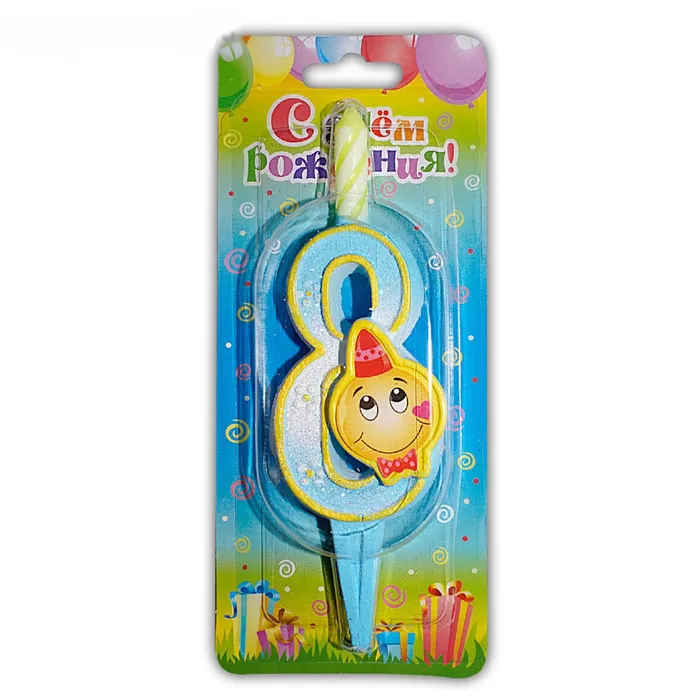 - Свеча-цифра 7,6 см Смайлик "8"