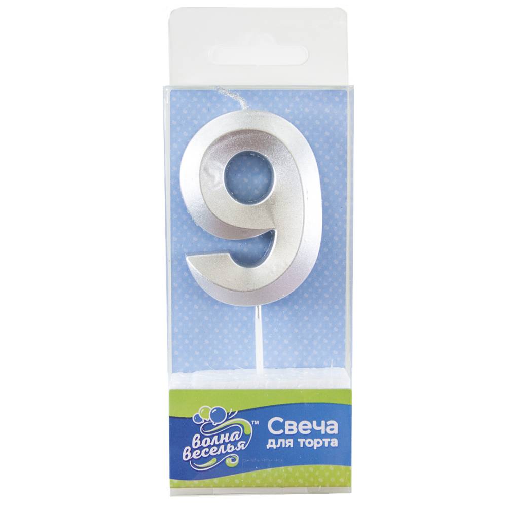 - Свеча-цифра "9" Грани Серебро, 6 см/802759