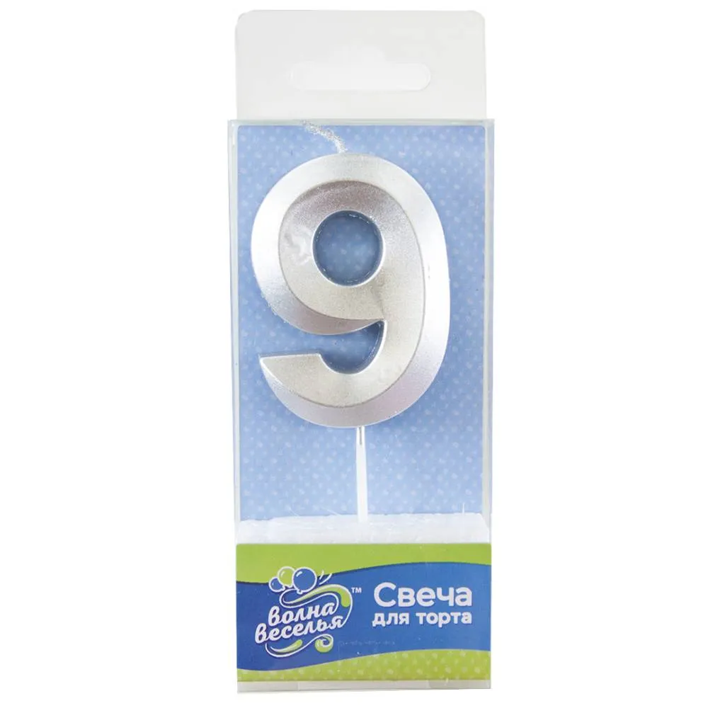 Свеча-цифра "9" Грани Серебро, 6 см/802759