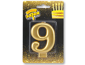 Свеча-цифра "9" Золотая 8 см / 1502-2842