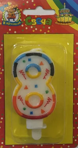 - Свеча-цифра разноцвет 7,6 см "8"